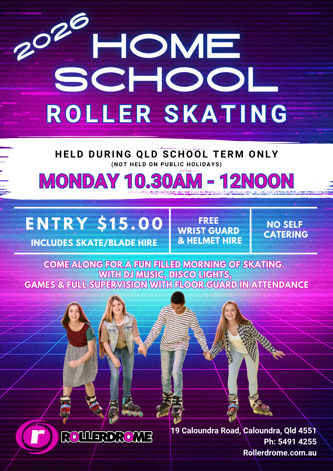 Come along for a fun filled morning of skating. With DJ music, disco lights, games & full supervision with floor guard in attendance