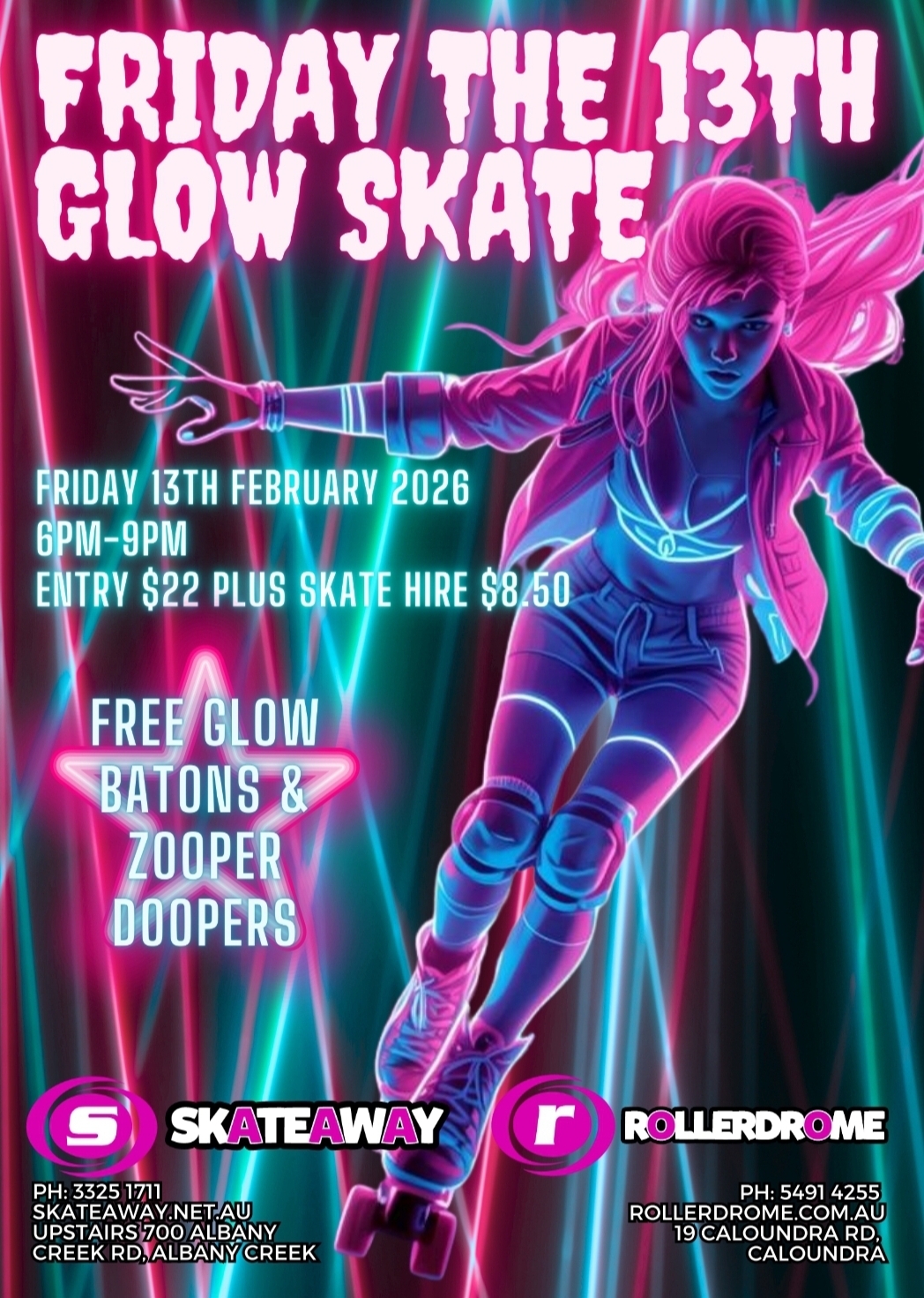 - 10.30AM – 12NOON* Coffee Skate – $19.00 ENTRY plus HIRE